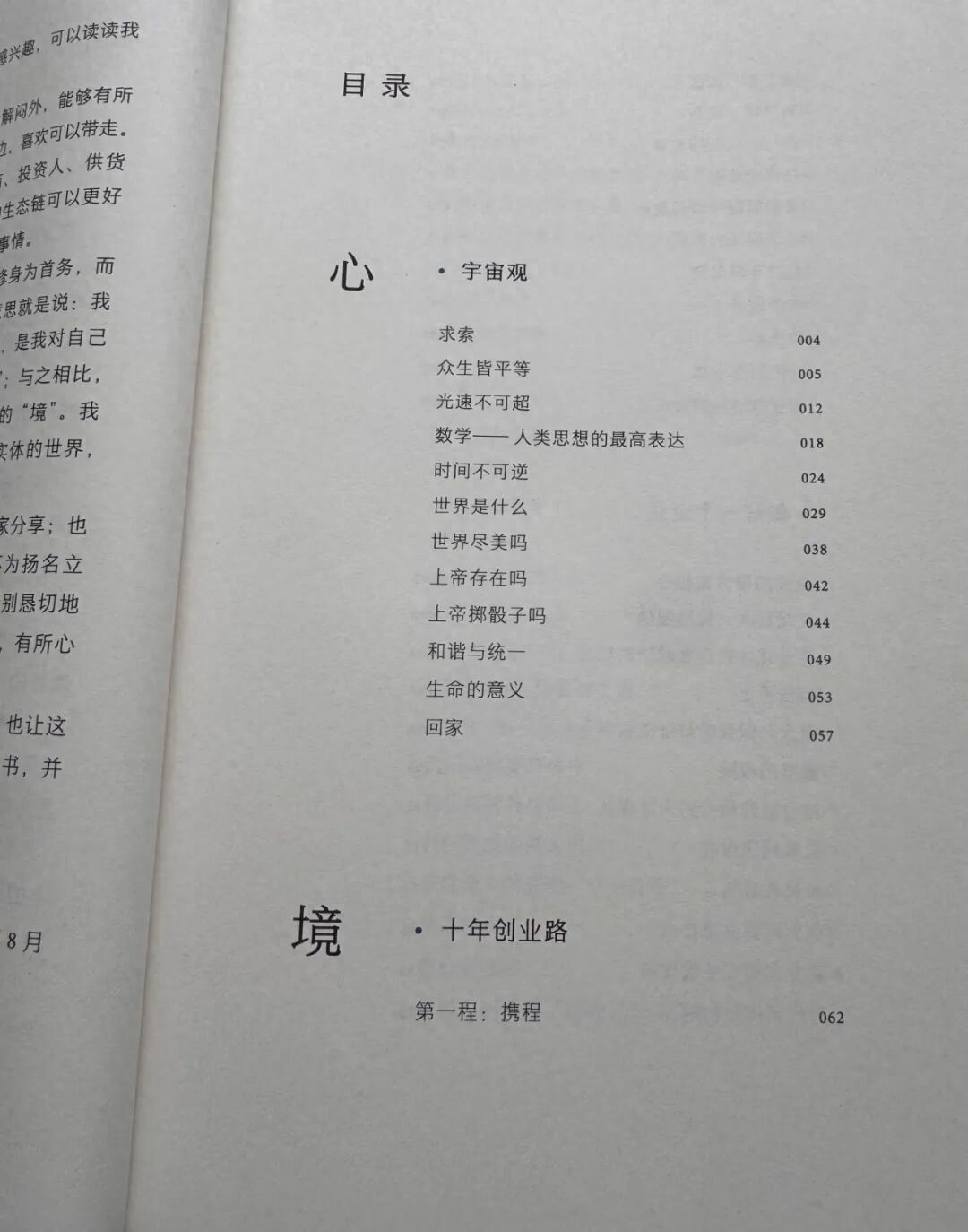 比如作为典型的理工专业出身,季琦自始至终都相信宇宙的确定性,所以他才会将书里的一部分篇幅,放在「心」这一章节上,去解释自己的宇宙观,或是数学之于人类文明的重要性。