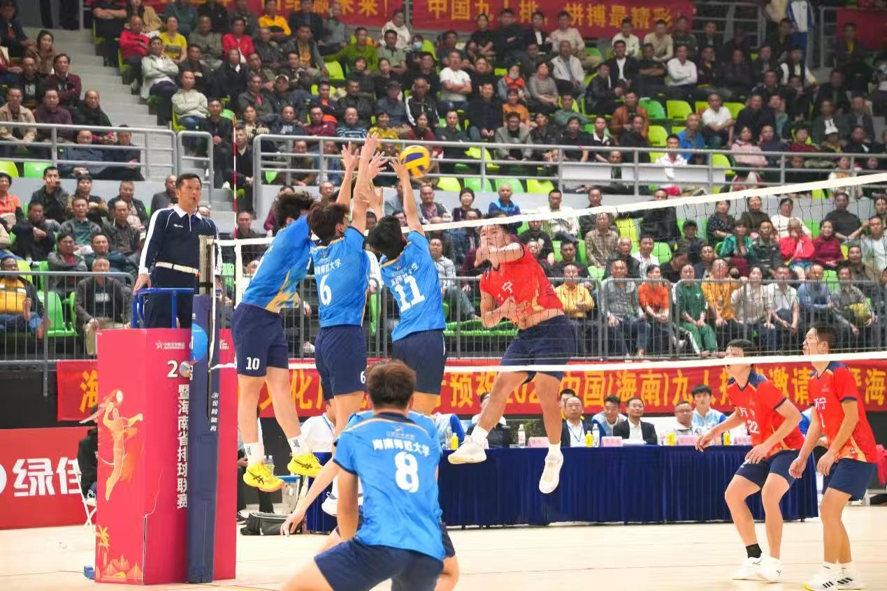 12月28日晚,2025中国(海南)九人排球邀请赛暨海南省排球联赛在万宁市文化体育广场体育馆落下帷幕。当晚决赛扣人心弦,直到最后一刻才决出胜负,海南师范大学队以3:2(14:21、21:16、9:21、21:18、27:25)惊天逆转东道主万宁队,时隔八年再度捧起联赛冠军奖杯。这是海师大队队史第八次夺得联赛冠军,继续保持联赛27年来夺冠次数最多的纪录。万宁队获得亚军,文昌队夺得季军,澄迈队获得殿军,广东队和福建队并列第五。