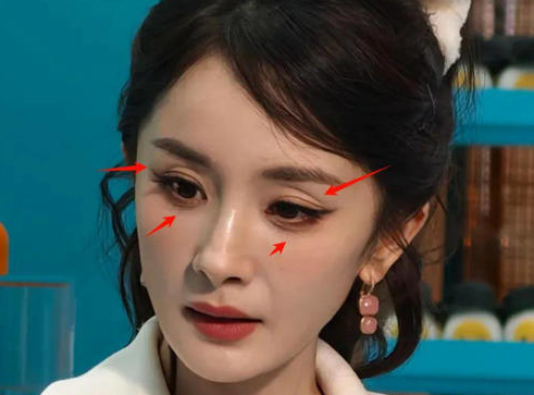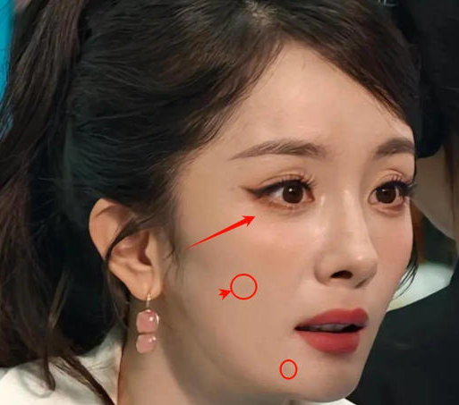 似乎还因为贴了双眼皮贴的原因,杨幂的眼皮都被挤出了凹陷,“三眼皮”重出江湖,眼周皮肤有点儿松弛了。