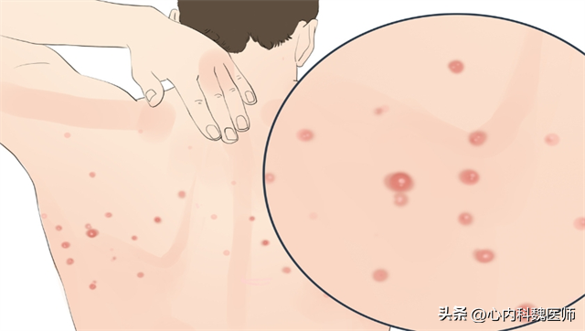 主要集中在四肢、脸上以及躯干区域,小到针尖样,大的可达1cm至2cm风团样。
