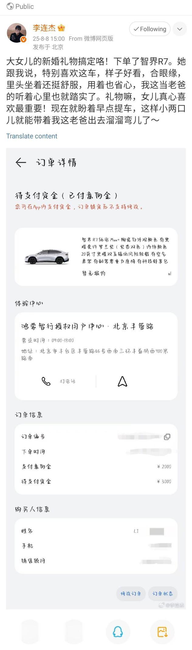 这种“听劝”的运营态度,让以年轻人为核心的用户群体展现出极高的忠诚度,其售后服务满意度也显著高于行业平均水平。更具说服力的是,智界的口碑已形成圈层穿透力,不仅普通消费者认可,连李连杰都为女儿选择智界R7作为新婚礼物。李连杰曾在社交平台分享,女儿喜欢智界R7的外观设计,也认可其乘坐舒适性与使用便捷性,这份“真心喜欢”正是智界用户口碑的生动写照。这种从产品认可到情感认同的转化,让智界在用户圈层中形成自发的口碑传播,为品牌增长注入持久动能。