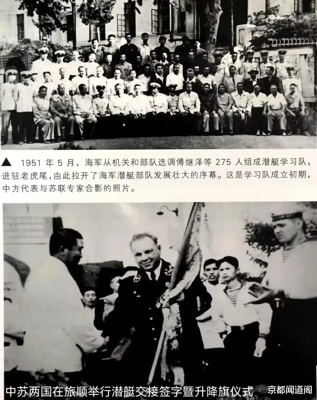 1951年3月,中央军委下达选调潜艇学员的通知,海军党委随即着手组建旅顺潜艇学习队。4月26日,从华东军区海军、各军事院校及海军直属机关选调的275名官兵,连同学习队领导机关18人,共计293名“种子”队员抵达旅顺老虎尾。5月14日,学习队正式开学,官兵们开启向苏联学习潜艇技术的历程,这也迈出了中国潜艇人才培养与部队建设的第一步。整个培训历时3年,于1954年6月18日顺利结业。