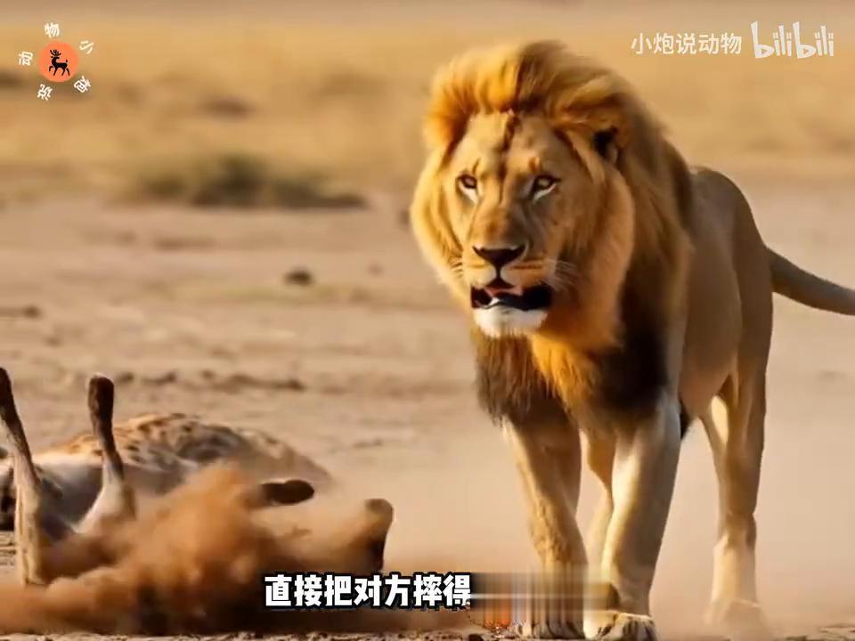一头雄狮如同天降神兵般冲进战场,一口锁喉把带头鬣狗摁在地上疯狂摩擦。还没等其它鬣狗反应过来,雄狮又一个转身扑向第二只鬣狗,咬住它的脖子左右狂甩,直接把对方摔得晕头转向。紧接着第三只鬣狗还想偷袭,结果雄狮一个分身扑咬就把这家伙重重摔在地上。整套动作行云流水毫不拖沓,转眼间鬣狗群就被揍得哭爹喊娘四散逃窜。