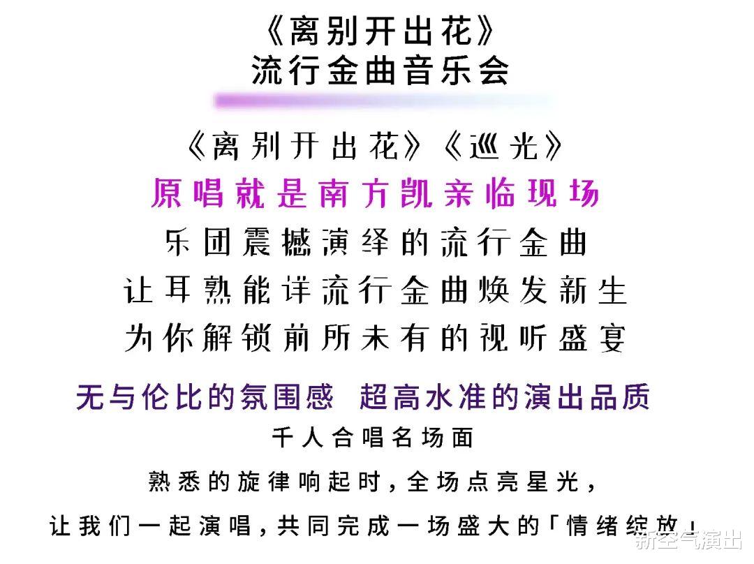 《离别开出花》流行金曲音乐会北京站让我们跟随南方凯的歌声一同在这个夏天谱写属于自己的音乐记忆篇章关注【新空气演出】获取最新演出资讯和惊喜福利;【绍野文旅】海量好剧等你抢,在线选座快人一步!