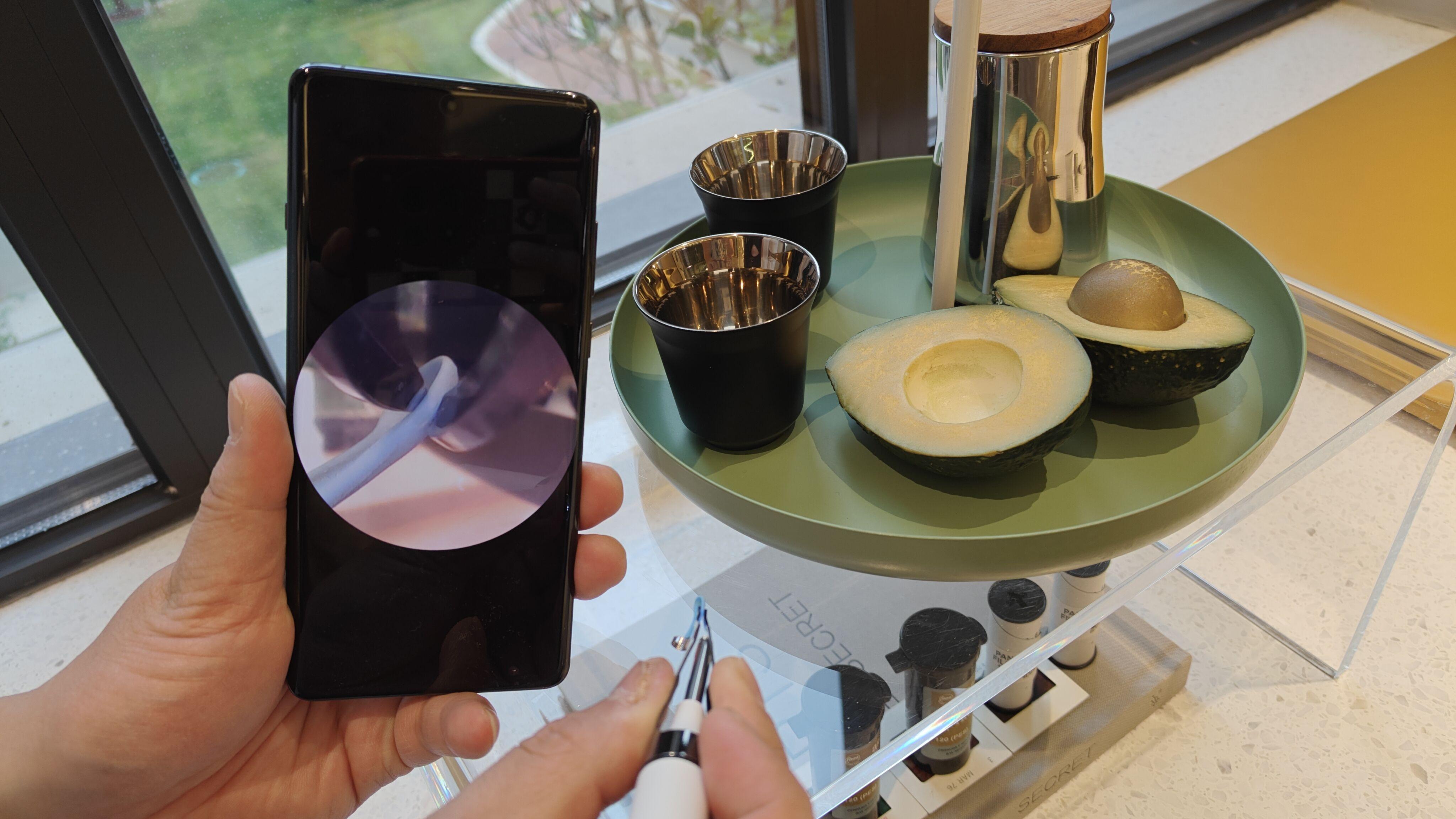 另外,耳勺的成像显示效果非常清晰,主要得益于搭载了自研的A-Zoom动态调焦技术,能够在毫秒级时间内完成焦点调整,确保图像始终保持清晰、稳定。另外还有6颗LED精密光学阵列和OAS光透镜技术,实现了无阴影操作。这一功能在实际清洁过程中非常实用,无论是在移动耳勺的过程中还是在静止状态下,图像都能够保持清晰稳定。
