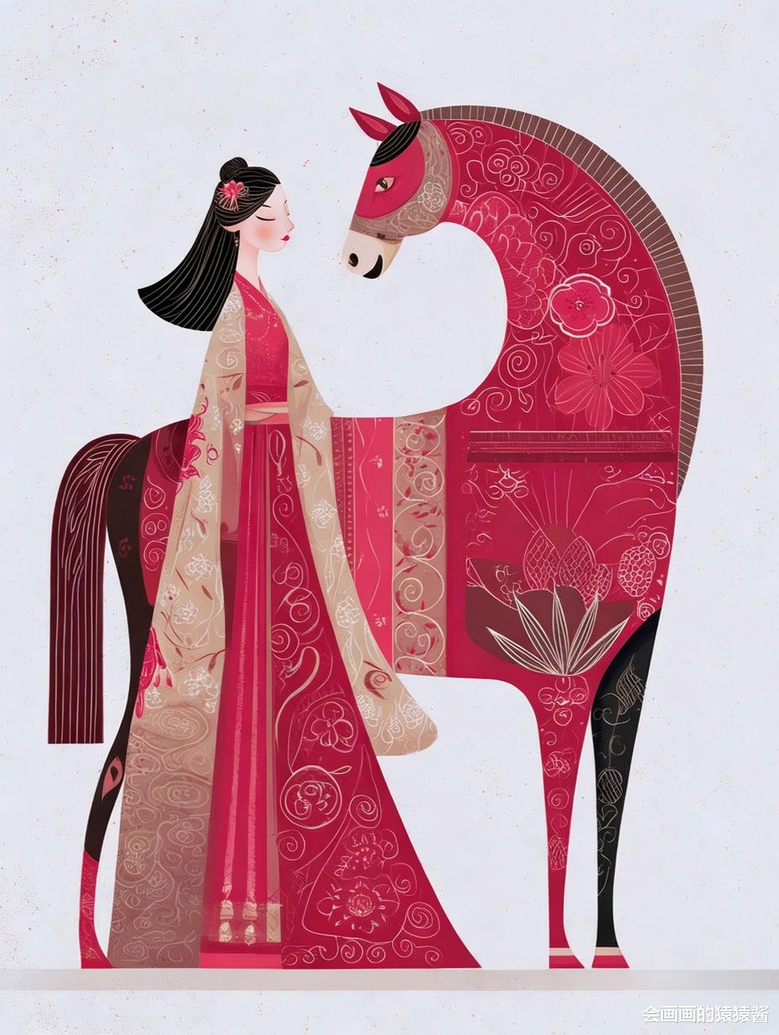 在ComfyUI中,我通过“线条强化”节点锁定剪纸风的利落轮廓,用“平涂色彩”节点统一红金主调,再配合ControlNet的OpenPose节点固定人物与骏马的构图关系,让传统纹样与现代插画语言完美呼应,是打造春节、生肖等国风主题素材的高效方式。