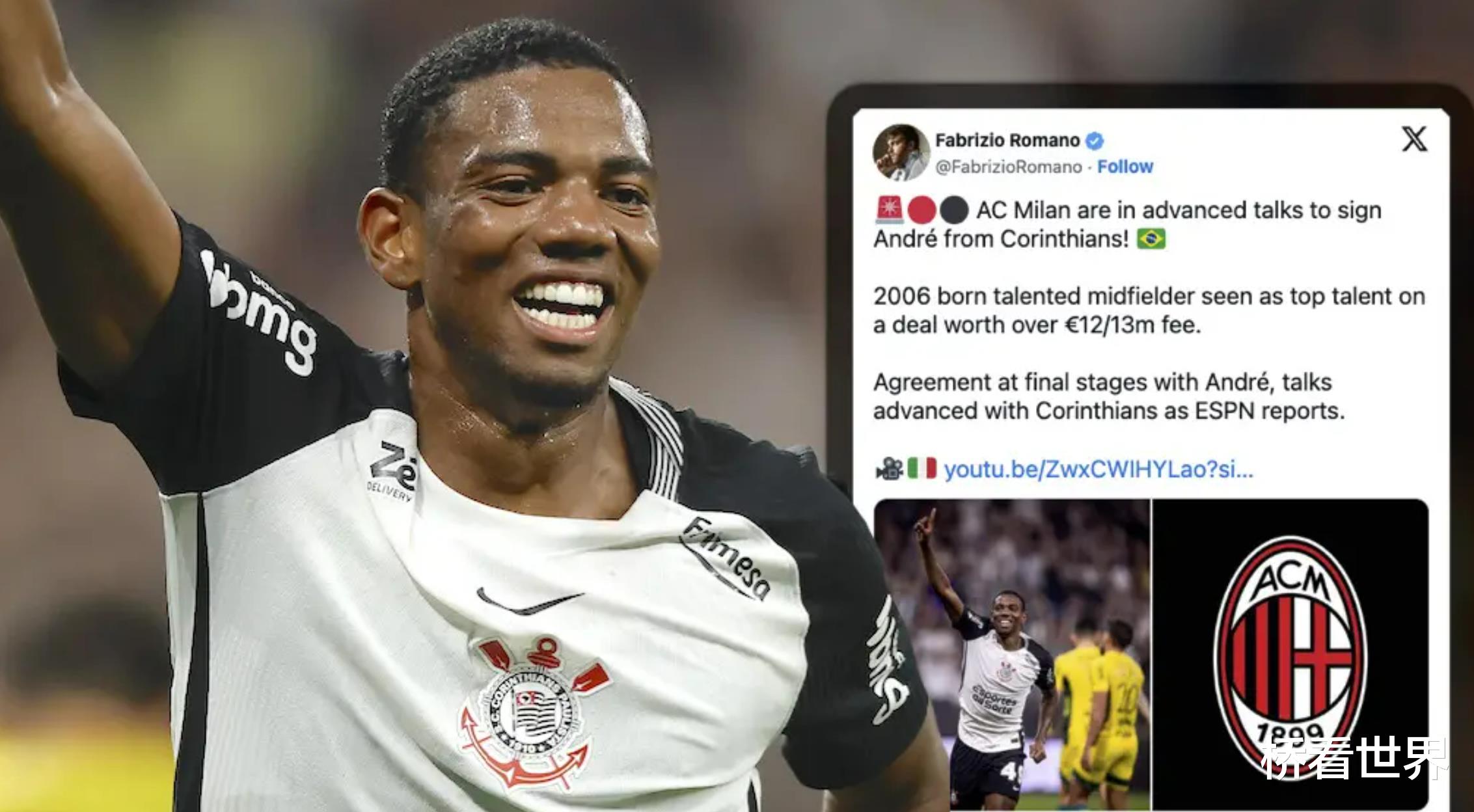 知名转会记者法布里齐奥·罗马诺报道称,AC米兰正就签下安德烈-路易斯进行深入谈判,转会费约为1200 万至 1300 万欧元。科林蒂安总监马塞洛・帕斯在近期采访中基本证实了这一消息。