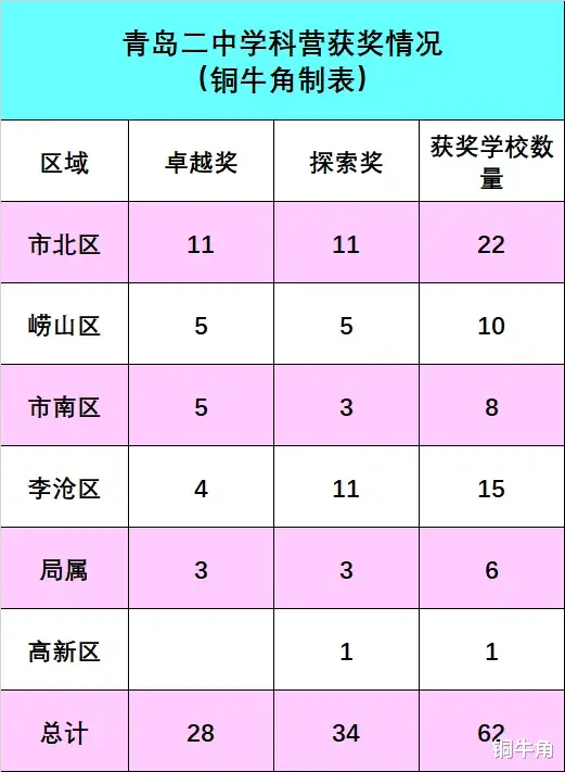 这次青岛二中学科营,一共62所初中获奖,其中: