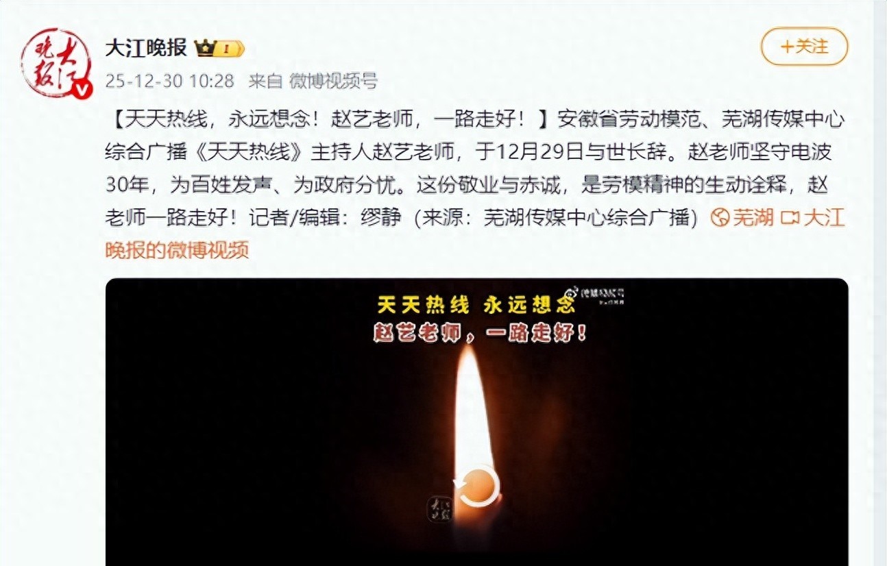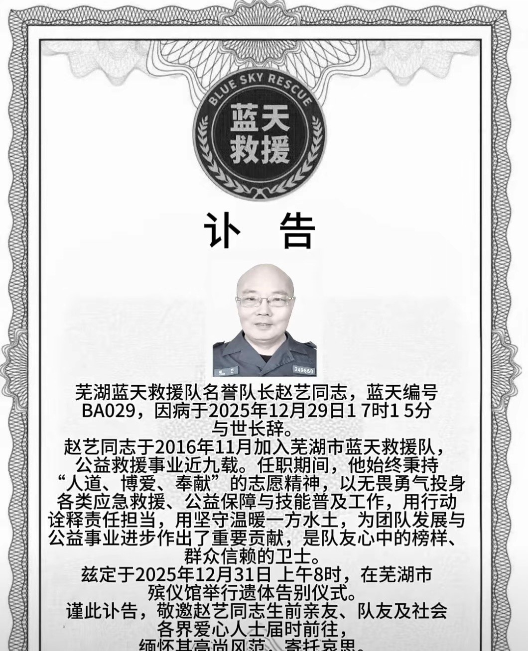 人走茶凉这四个字,有时候真不是比喻。2023年12月30号,安徽芜湖不少老听众心头一沉——《天天热线》那个声音熟悉得像邻居大哥的主持人赵艺,走了,才60岁。谁也没想到,年初看着他还胖了一圈,脸上有肉,说话也温和,还以为是他身体好转的信号。结果这才几个月,殡仪馆的讣告就贴出来了,31号早上八点追悼会,蓝天救援队发的,白纸黑字,落款带着公章。