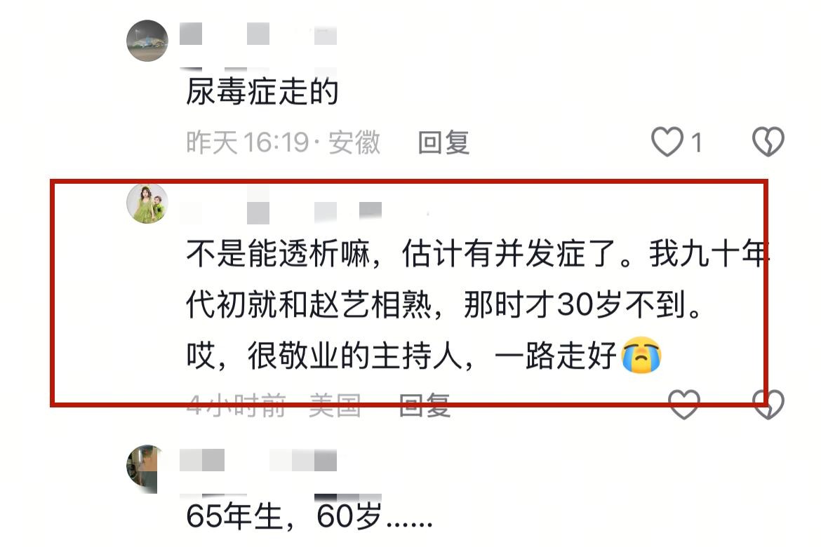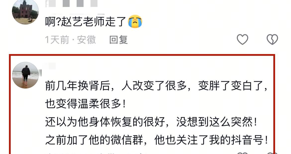 更让人没想到的是,这个每天在电波里跟人讲“你好”的人,早早就被尿毒症缠上了身。从透析到换肾,这几年他的脸明显瘦过一轮,脸色发暗,镜片后的眼神也多了几分疲惫。粉丝们在评论区心疼地留言:“赵老师,别熬了,歇两天吧。”结果没过多久,又看见他术后恢复得不错,脸又圆了回来,声音也柔和了。大家刚松口气,以为熬出头了,却突然等来了告别。