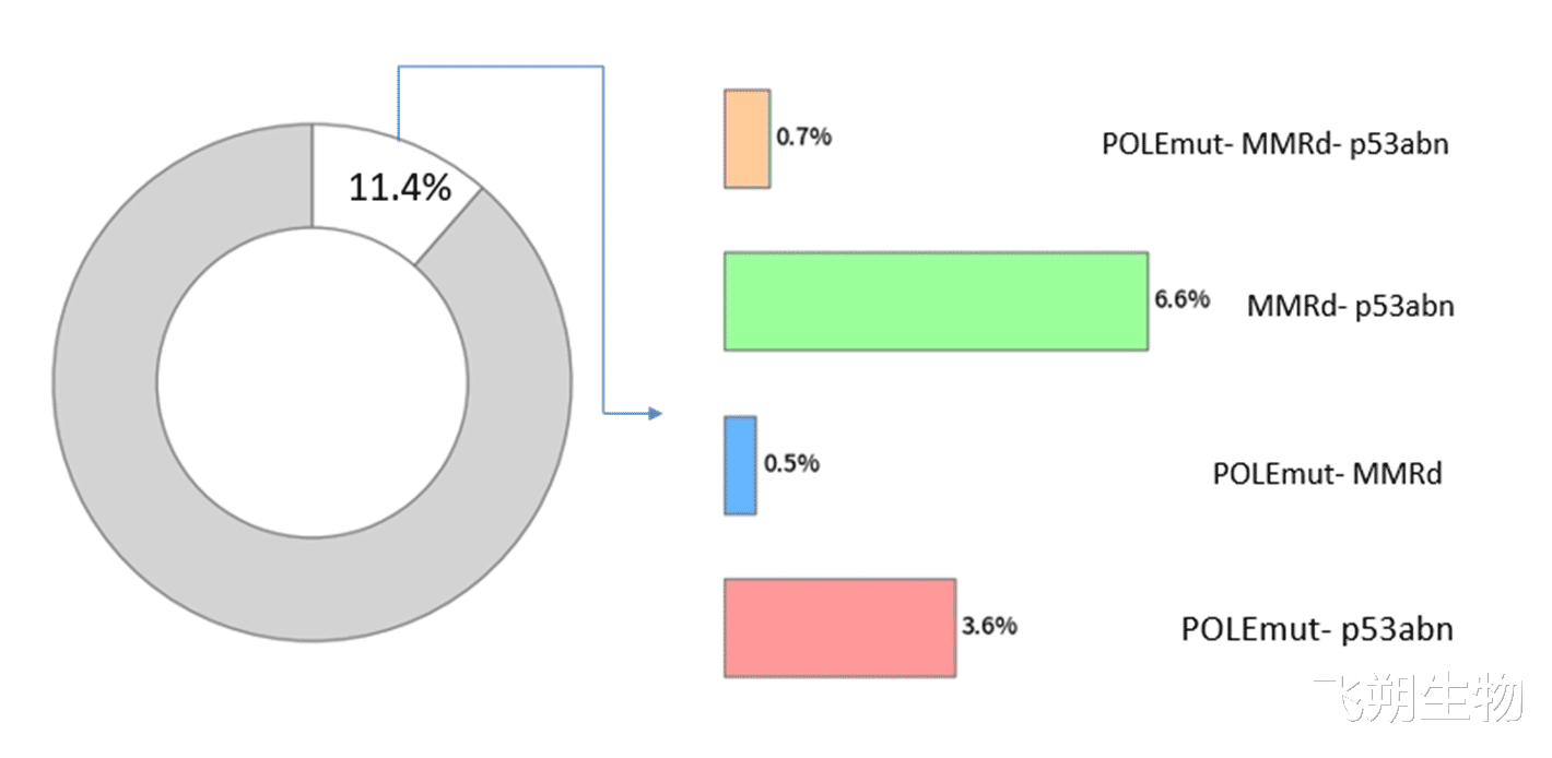 在所有多重分类肿瘤中,dMMR合并TP53变异(MMRd-p53abn)是最常见的类型,占比约6.6%,远高于其他组合类型 [1]。
