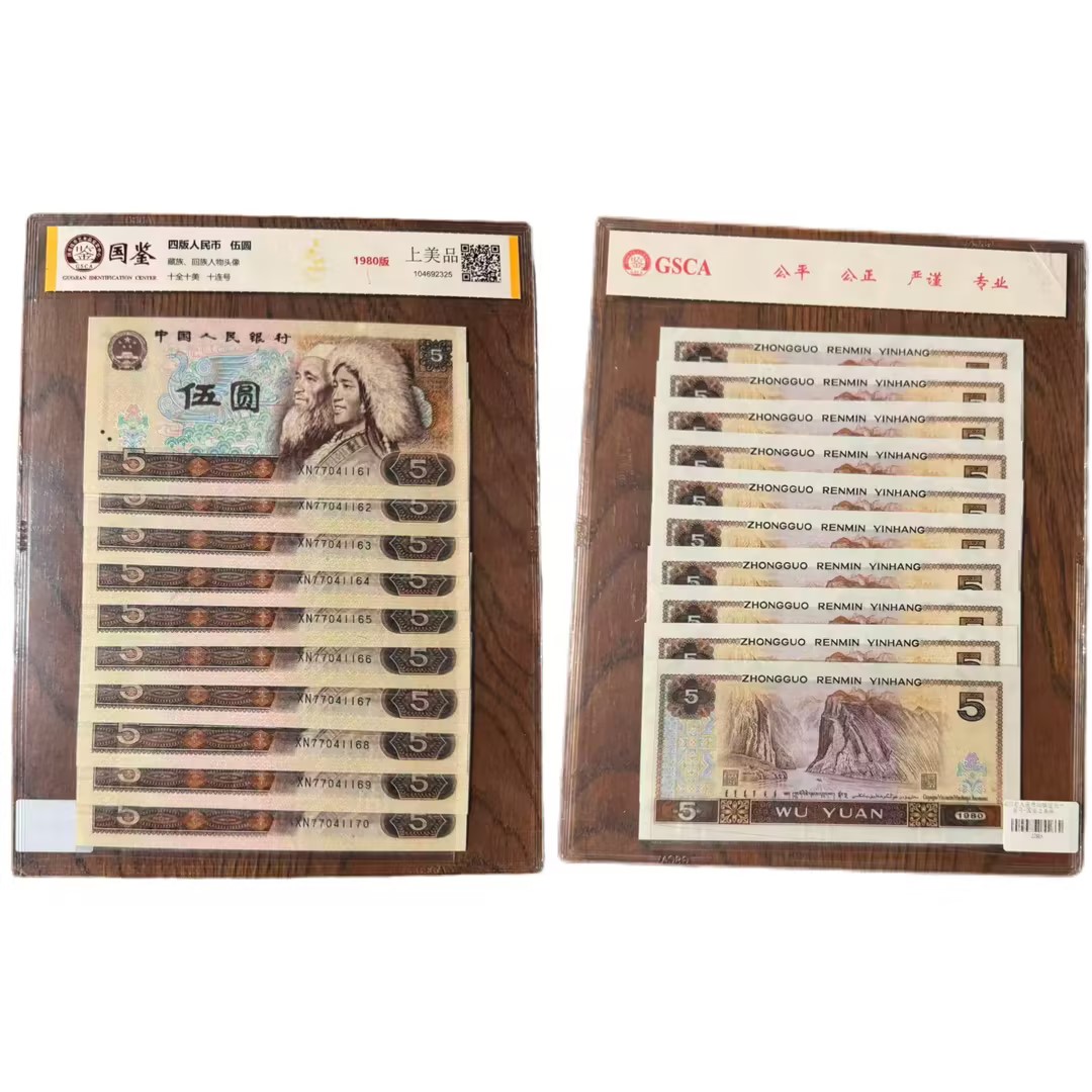 收藏者需优先关注 “80 版”“上美品” 评级及十连号序列的藏品,同时警惕真伪、处理币与价格虚高陷阱。这组伍圆不仅是纸钞,更是改革开放初期经济史的 “档案”、四版币工艺的 “典型”,在钱币收藏领域持续释放着独特的价值魅力。