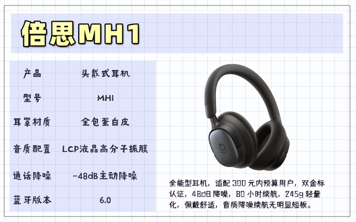 倍思MH1这款耳机适合谁?适合追求“无短板”体验的全能用户,无论是通勤降噪、办公听歌还是出差续航,它都能满足,是预算300元内的首选。