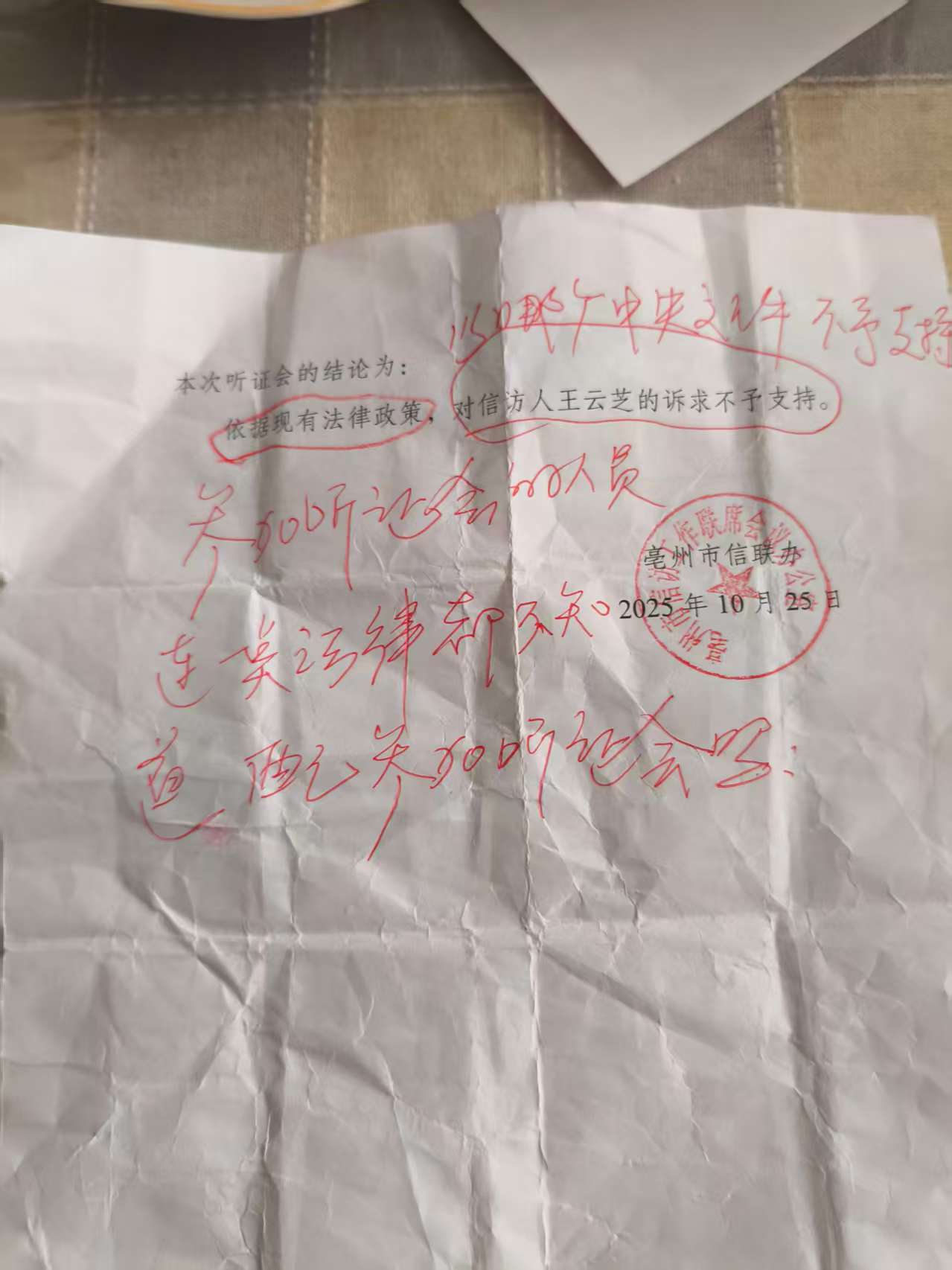 越级信访遭拘留在维权无果的情况下,王女士女儿于2025年1月24日越级至国家信访局走访登记,要求归还、赔偿腾又安在解放初期被政府代管的房屋。但被亳州市公安局认定为扰乱了正常的信访工作秩序,对王女士女儿予以行政拘留十日。