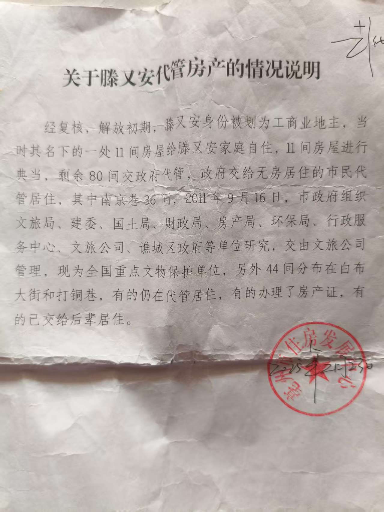 房产被无手续征用尽管房屋由相关部门代为管理,但产权仍归属王女士家族。2011 年,南京巷钱庄被列为全国重点文物保护单位。在此过程中,王女士一家表示并未提前知晓相关情况,而原来居住在委托管理房屋内的居民被另行安置。