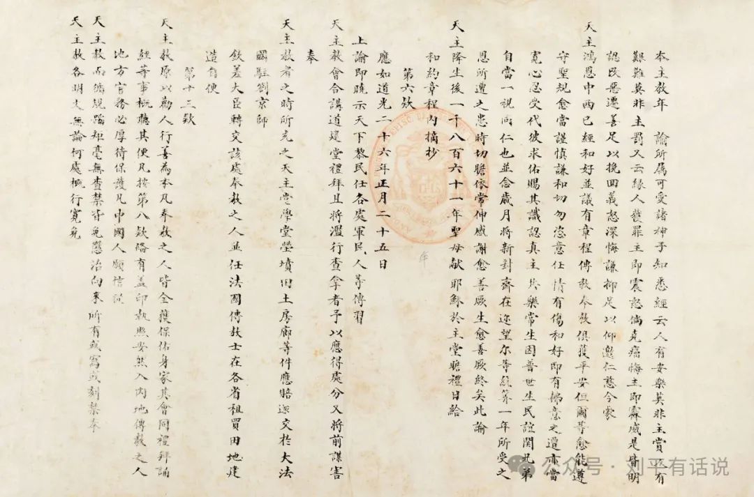 咸丰十年(1860)10月25日,中法《北京条约》签订,条约第六款规定: