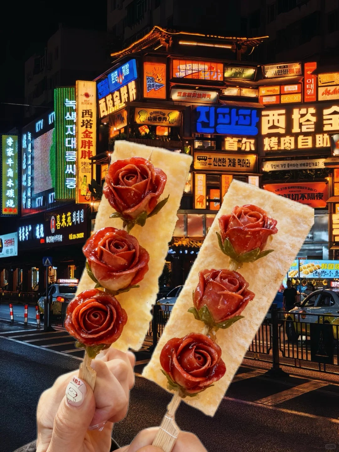 为吸引眼球,商家还推出花朵形状、巨型尺寸等创新设计,糖葫芦不再是那个晶莹剔透裹着山楂的简单零食,而是进化为缤纷多彩的“拍照神器”。