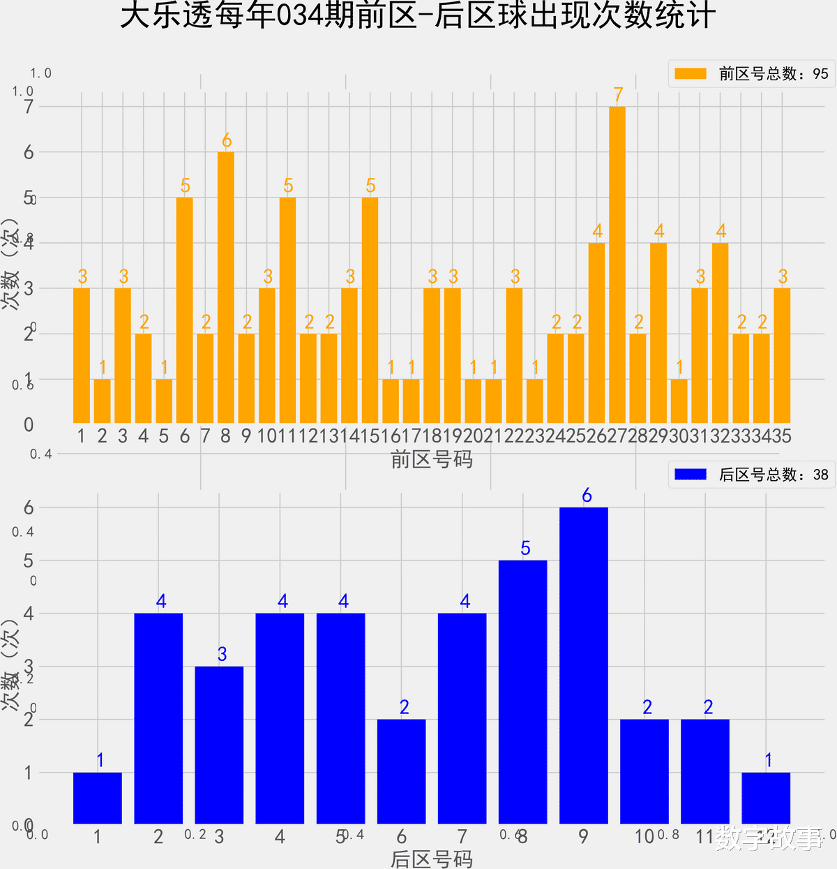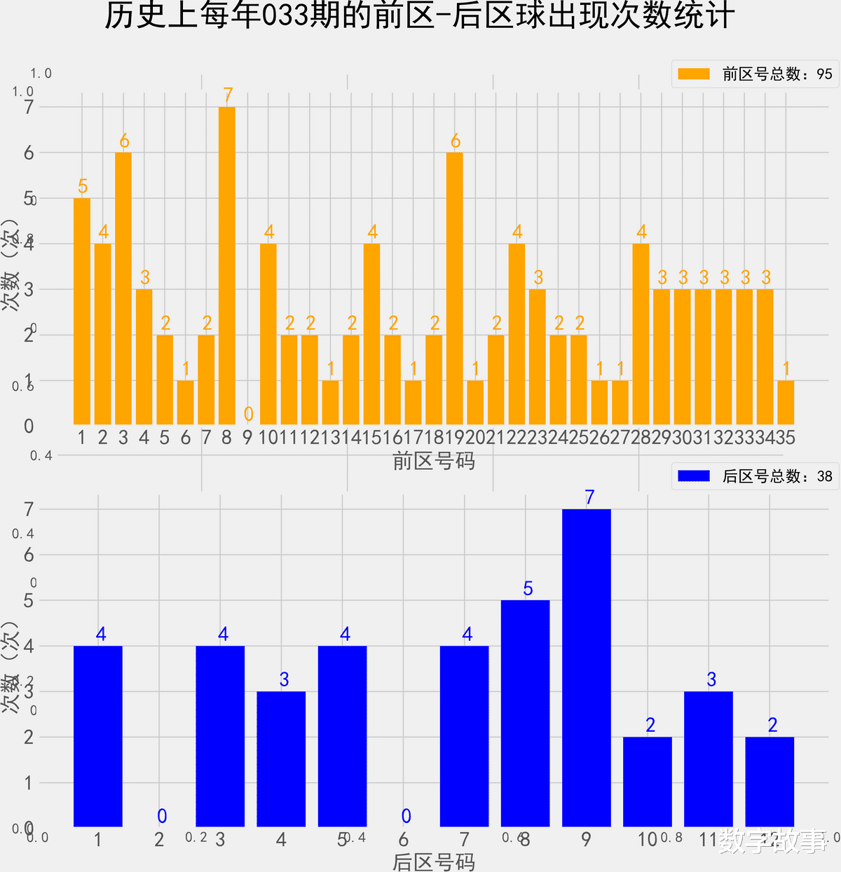 统计每年033期的样本数据: 95个前区号 38个后区号