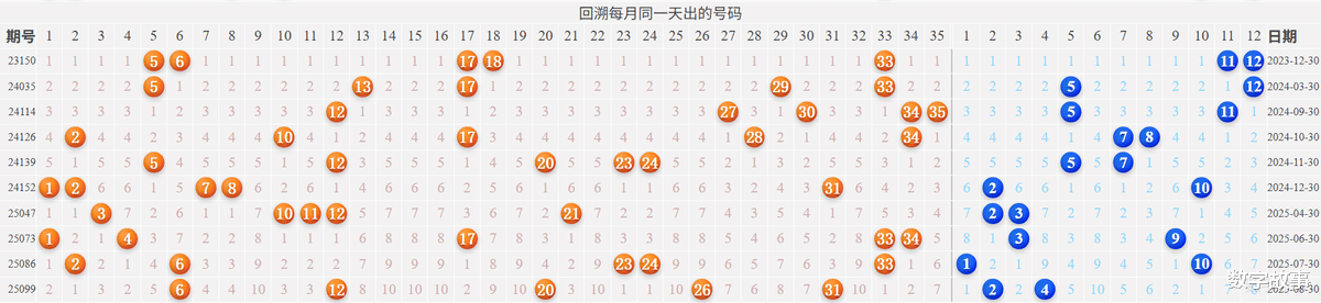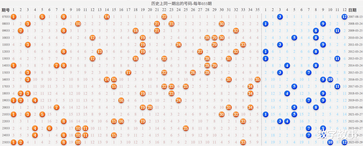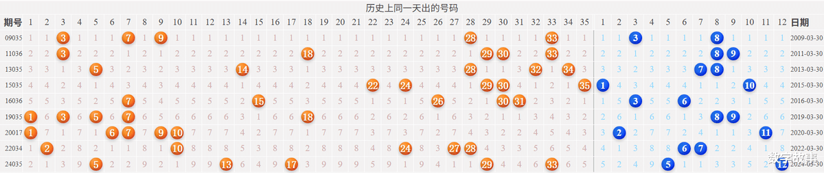博弈心理,挑战概率: 看近期开奖号码,也可看历史数据统计!【大乐透26033期多角度冷热号】大乐透26033期四维走势图,前后区号统计及冷热号1) 历史同一天:03月30日 (共9期)
