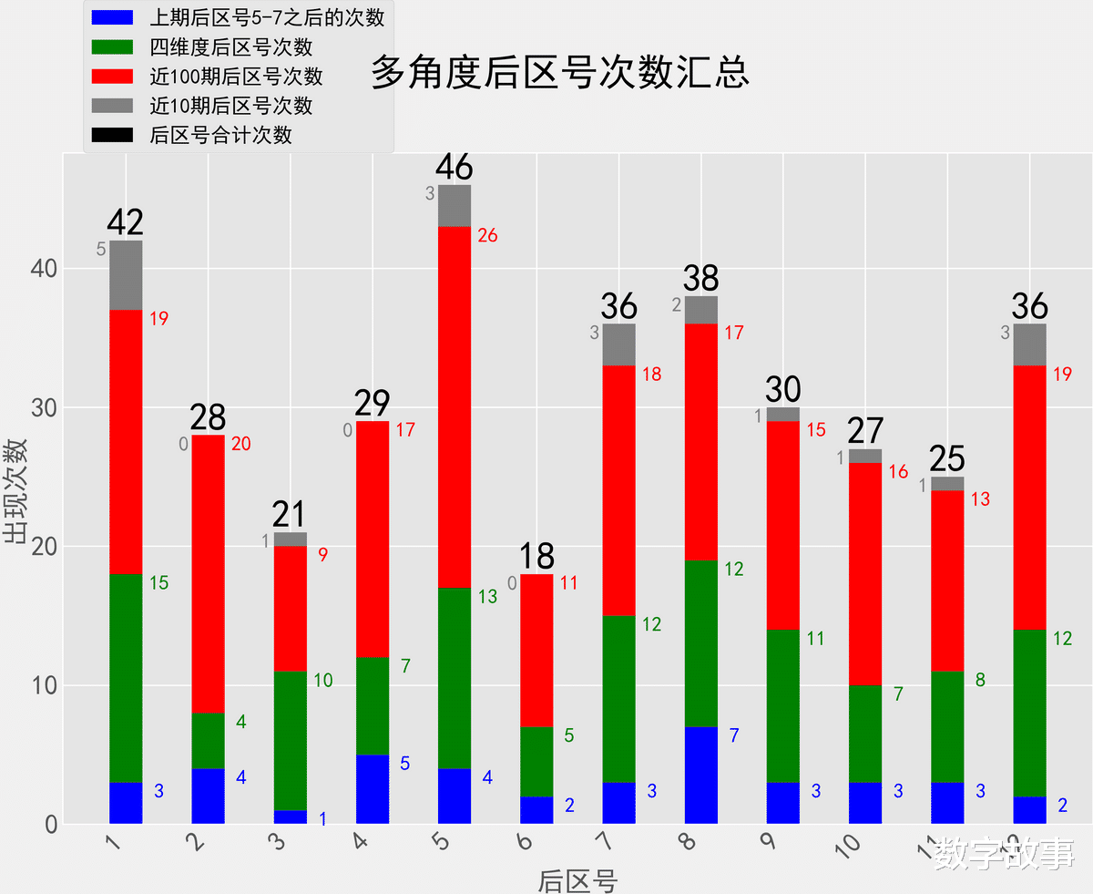 => 汇总的后区冷热号:热号:5,1,8冷号:6,3,11,10