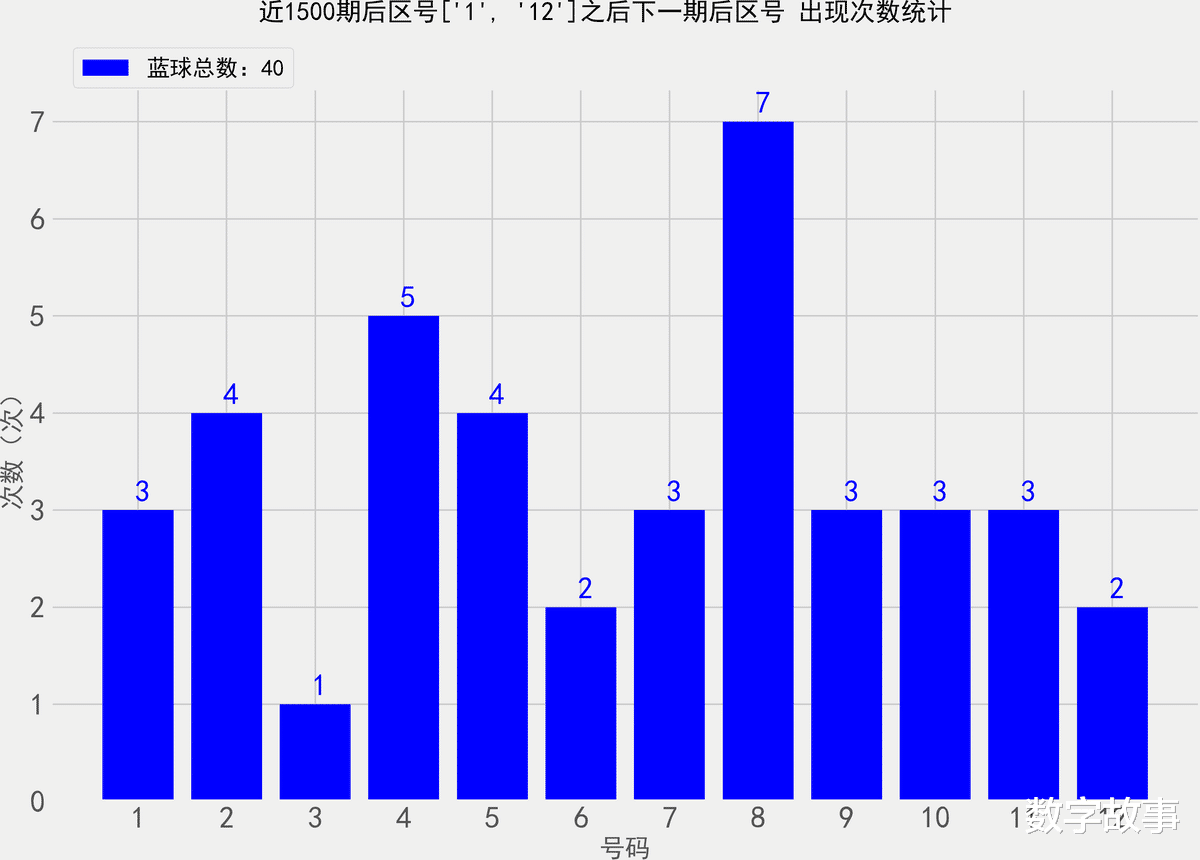 统计近1500期后区号1-12之后, 各后区号的出现次数大乐透26032期后区号是1-12找出近1500期后区1-12号之后,下一期出现的所有后区号,统计其出现次数。除开这一期,共出现了20次1-12后区号那么统计的样本数据是40个