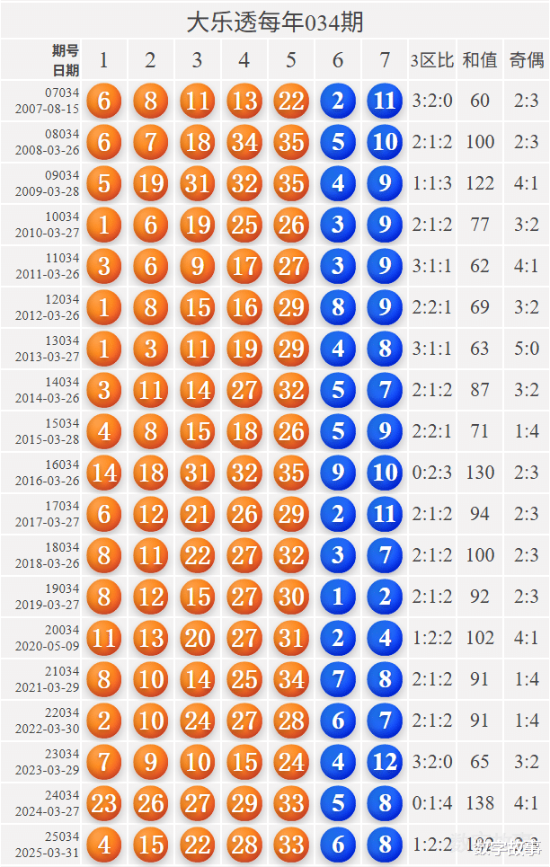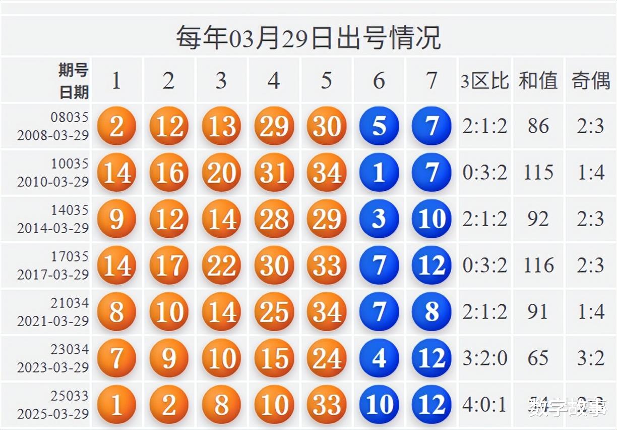 【其他历史数据查询统计】大乐透历史上的今天2026-03-29 星期日 大乐透不开奖每年03月29日出号情况: