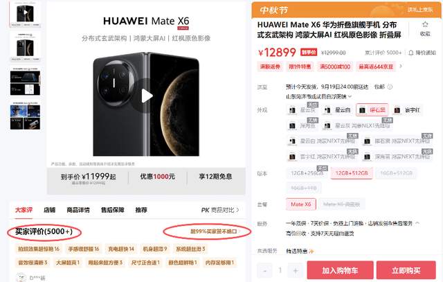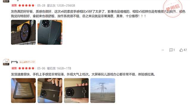 在电商平台,随处可见的“非常推荐买”“质感无敌好”“和直板机一样轻薄”“电池很耐用”“操作系统很不错”“非常满意”……等评论,能明显看出华为Mate X6已经成为很多高端用户的首选折叠旗舰。这并不是用户偶然的口碑爆发,而是他们从了解到信赖的真实写照,更是华为Mate X6“大屏大有不同,强到飞起”的最好证明。