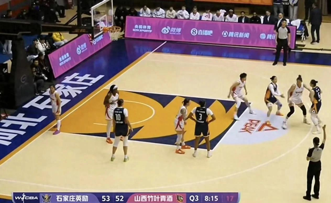 第四节决战。没想到石家庄英励女篮竟然如此强势。翟若云蹦筐,埃格博抢板造犯规两罚中1,王丽丽急停跳投打进,霍俊彤篮下抛投2分,王丽丽弧顶三分再中,翟若云三分蹦筐,戴维斯进攻犯规,刘贝突破造犯规两罚中1,王丽丽打铁,埃格博反击失误,王丽丽走步,石家庄女篮叫停。布朗篮下不中,戴维斯中投再进,81-74。