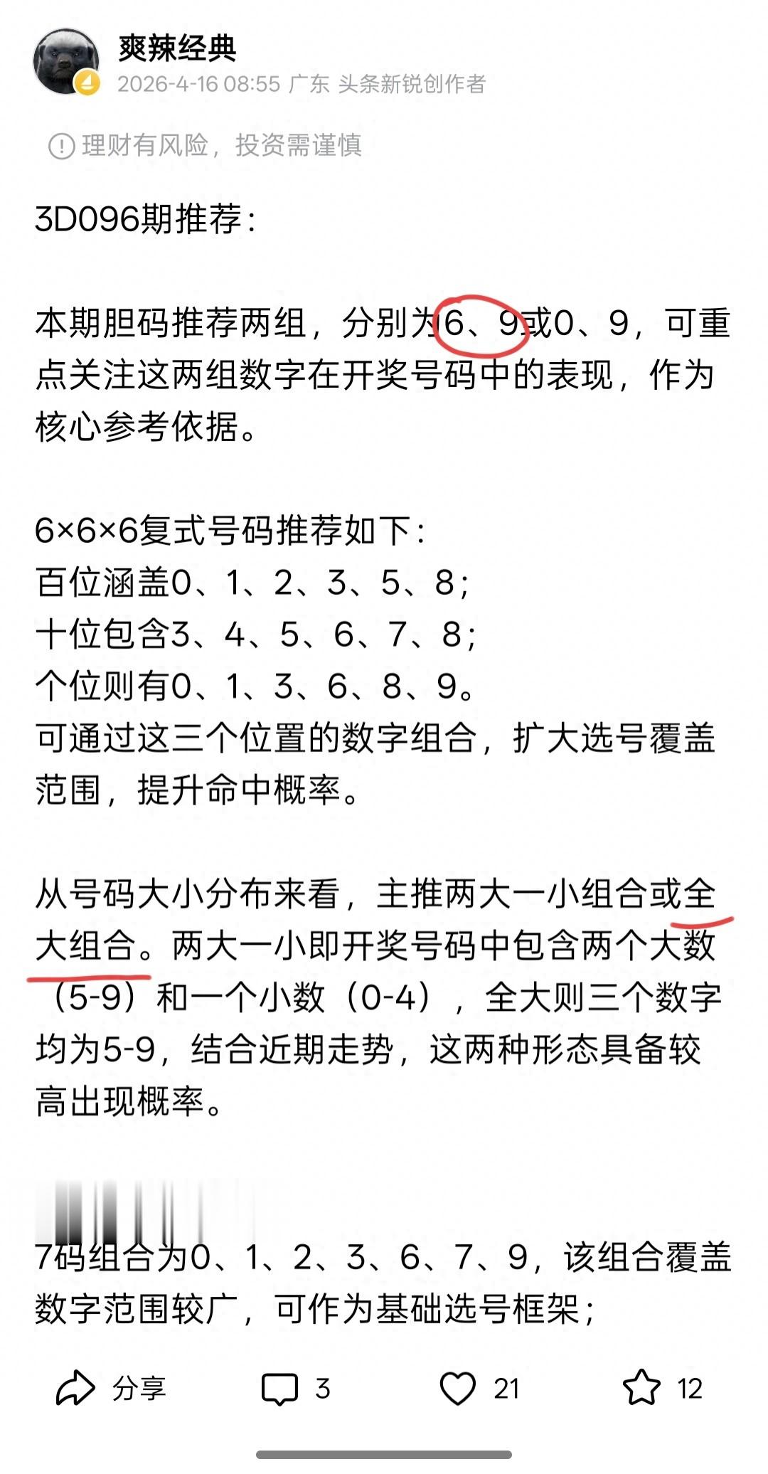 上期推荐回顾,胆中6 9 ,推荐全大组合也中,推荐的5 6 码,单注推荐大底分别中689,今天继续努力!