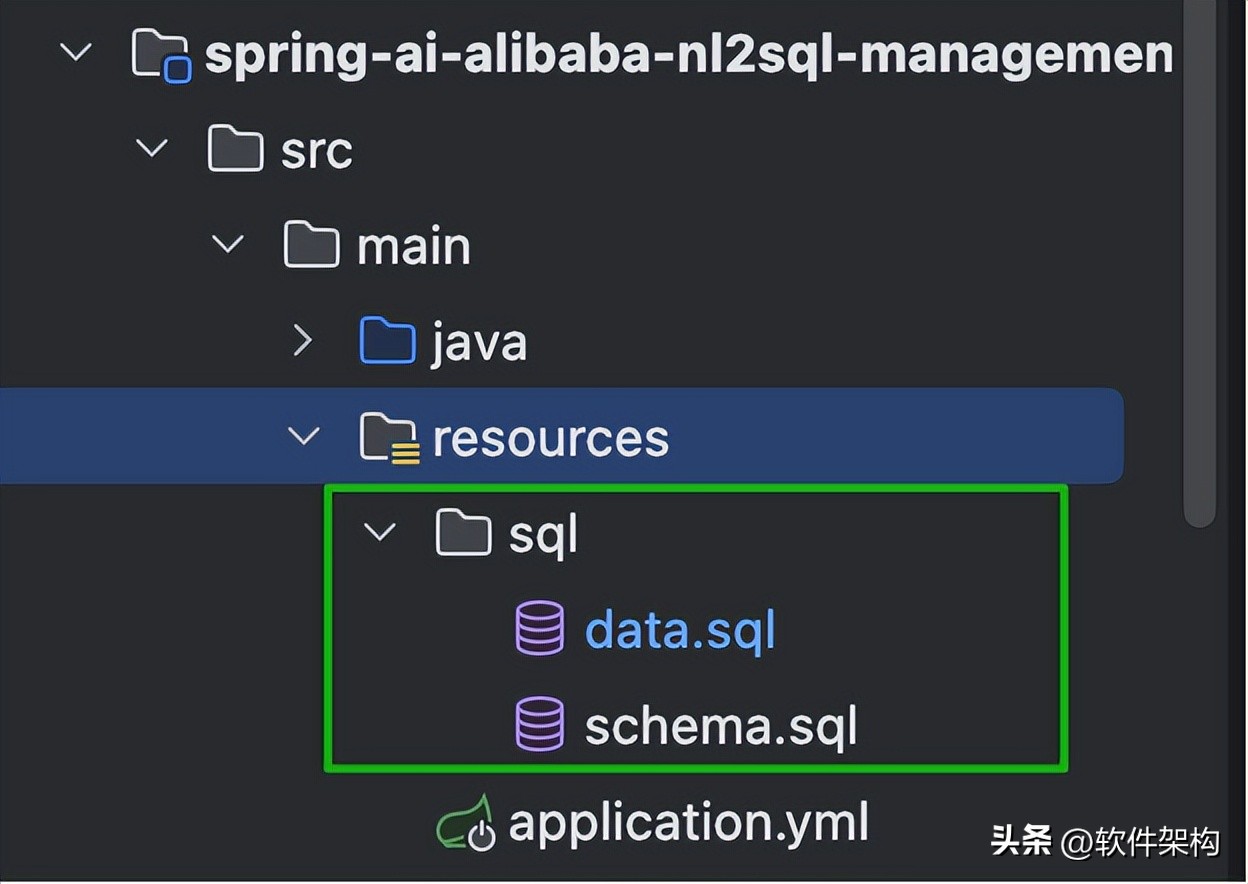 在Spring Boot应用中,resources/sql目录下的schema.sql和data.sql文件是数据库初始化脚本,用于自动创建表结构和插入初始数据。