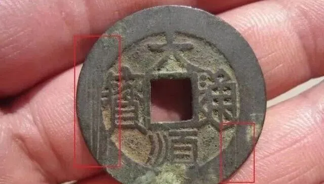 ▼假币穿口大顺这个品种,未流通的居多,传世的很少,从目前出土的未流通的大顺来看,很少会有穿口出现毛茬感。