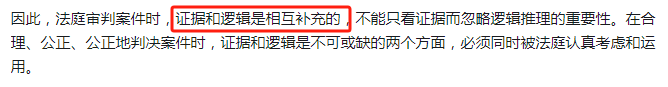 如果说证据是法庭判断案件的基础,那么逻辑是法庭在审理案件中保证公平公正的重要手段,如果你的案件法庭不需要逻辑,你愿意么?哪怕是你拥有绝对胜诉把握的证据面前?你会觉得这个案子胜的太简单,担心哪一天如果出现一个不利证据,无需逻辑,轻而易举的被推翻。这是绝大部分人最朴素的法感情表现,情理、道德在法律中的交织恰恰是人类思维逻辑的直白表现。