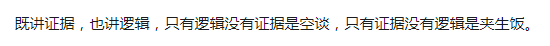 如果说证据与逻辑之间一定要分出个胜负,在我有限的认知中,逻辑应当比证据更重要,可以没有证据,但是绝对不能没有逻辑,我这么说,可能很多朋友会持不同的意见了