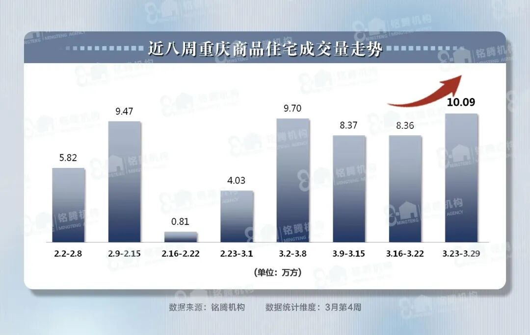 上周,重庆中心城区新房成交10.09万平米,环比大涨21%。