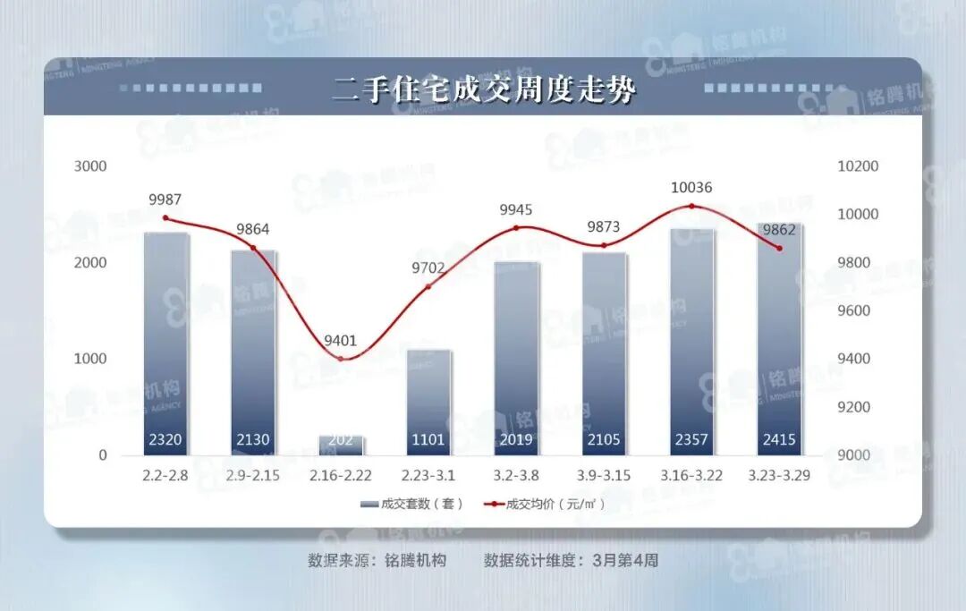 二手房住宅共成交2415套,环比上涨2%,实现了春节假期之后的“五连涨”!