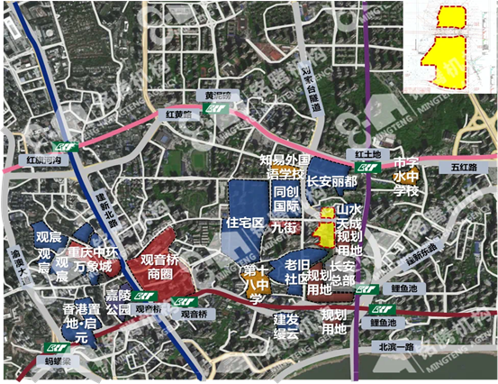 这块正好处于观音桥、江北嘴、北滨路构成的两江新区核心“黄金三角”的正中心。