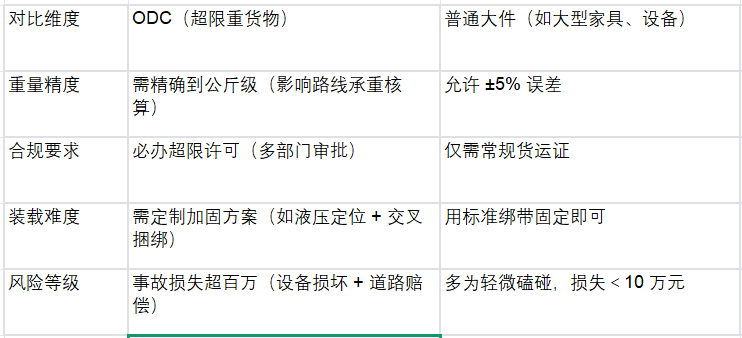 很多人会混淆 “ODC” 和 “普通大件”,但二者在合规、操作、风险上差异显著: