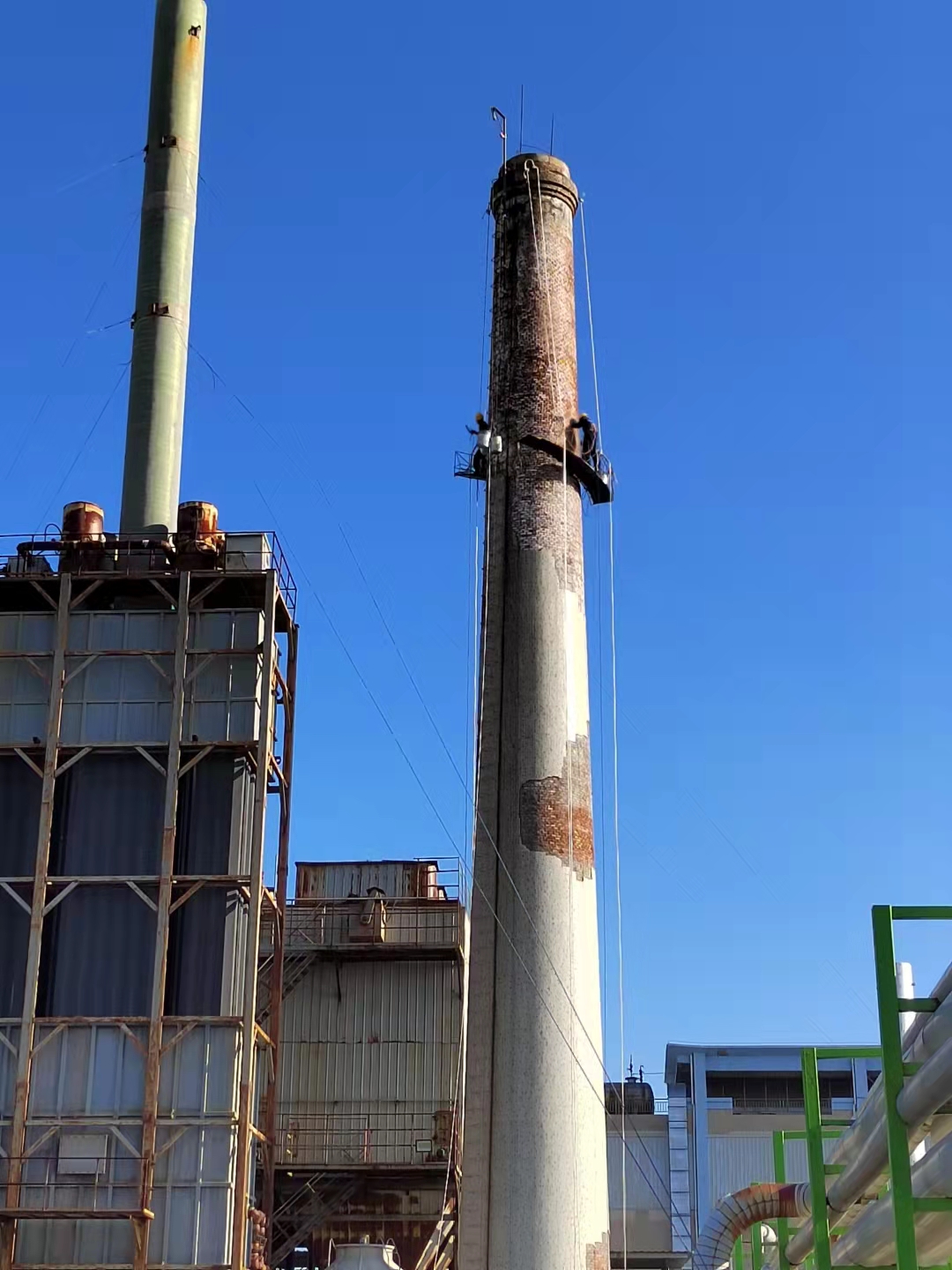 4. 钢爬梯、平台、支架锈蚀松动:除锈至St3级;松动螺栓紧固、更换,焊接补焊;底漆 2 遍 + 面漆 2 遍;严重锈蚀构件更换加固
