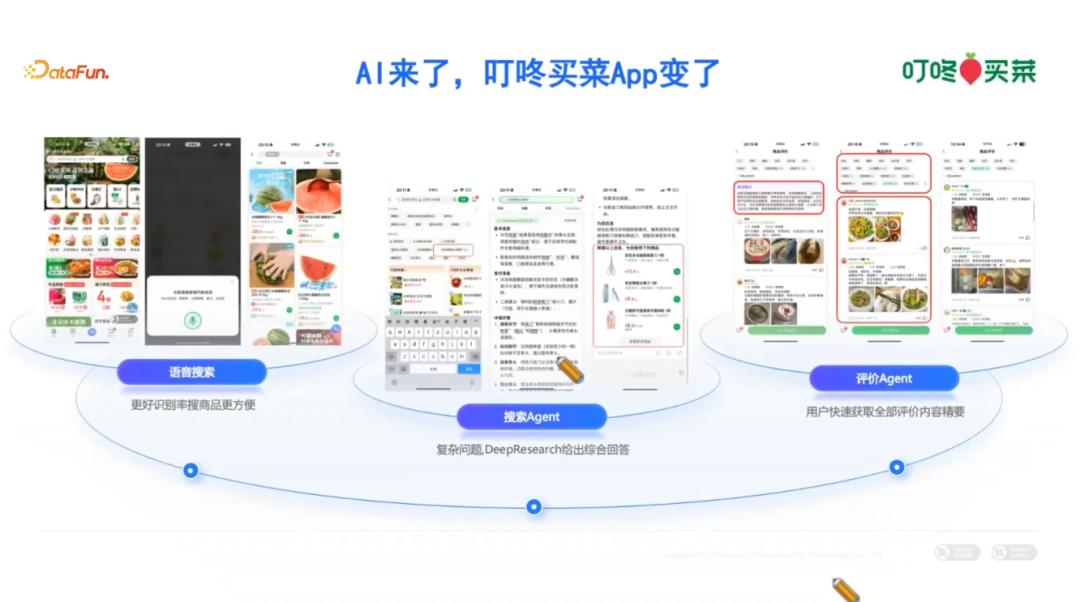 导读 今天分享的主题是:AI 饮食管家:让叮咚“买菜更简单、吃得更健康”。主要内容是 Agentic AI 在叮咚买菜的实践。整体来说,叮咚买菜在 AI 的应用的范围主要有三部分:1、供应链,从供应链的需求、库存、供应商管理,到物流、履约,直到消费者端的整个供应链;2、消费者侧,主要为 APP 端功能和体验;3、内部运营提效。这次分享主要侧重在消费者侧,其他部分简要带过。