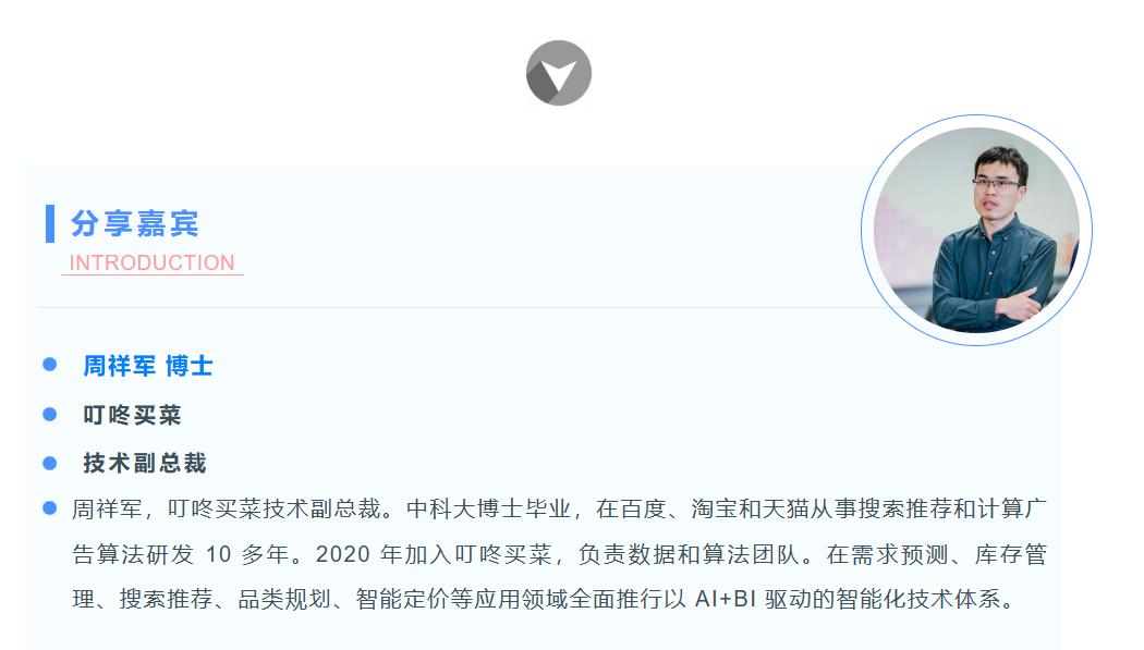 分享嘉宾|周祥军博士 叮咚买菜 技术副总裁