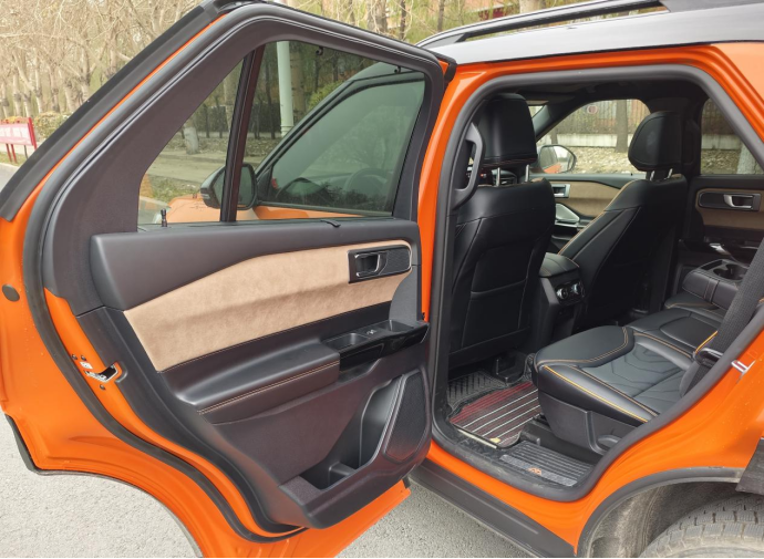 买车时重点考察了车辆的内饰和空间,毕竟家用这两点太重要了。普拉多的内饰比较朴素,空间也很狭窄,最后还是选择了探险者。我选的是2+2+2 的布局,第一排和第二排都是电动座椅,操作方便,坐上去特别舒服 —— 真皮和翻毛皮拼接的材质,跟皮肤接触很有质感,软硬也适中,能明显感觉到包裹感,长途坐着也不会累。
