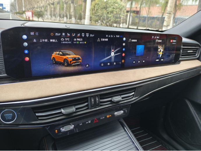 车内的科技配置很丰富,屏幕反应速度也挺快,听歌看导航都挺方便