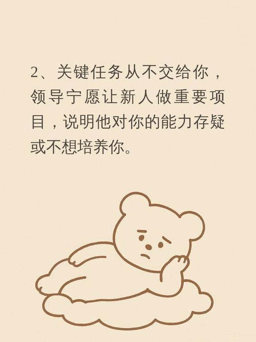 挑战性的项目、能见度高的任务,总是理所当然地落在别人肩上。你分到的,永远是那些按部就班、难以出彩的“安全”工作。领导似乎在用行动告诉你:“你不必承担重任,也承担不了。” 这不仅扼杀了你的成长空间,更是一种无声的否定。
