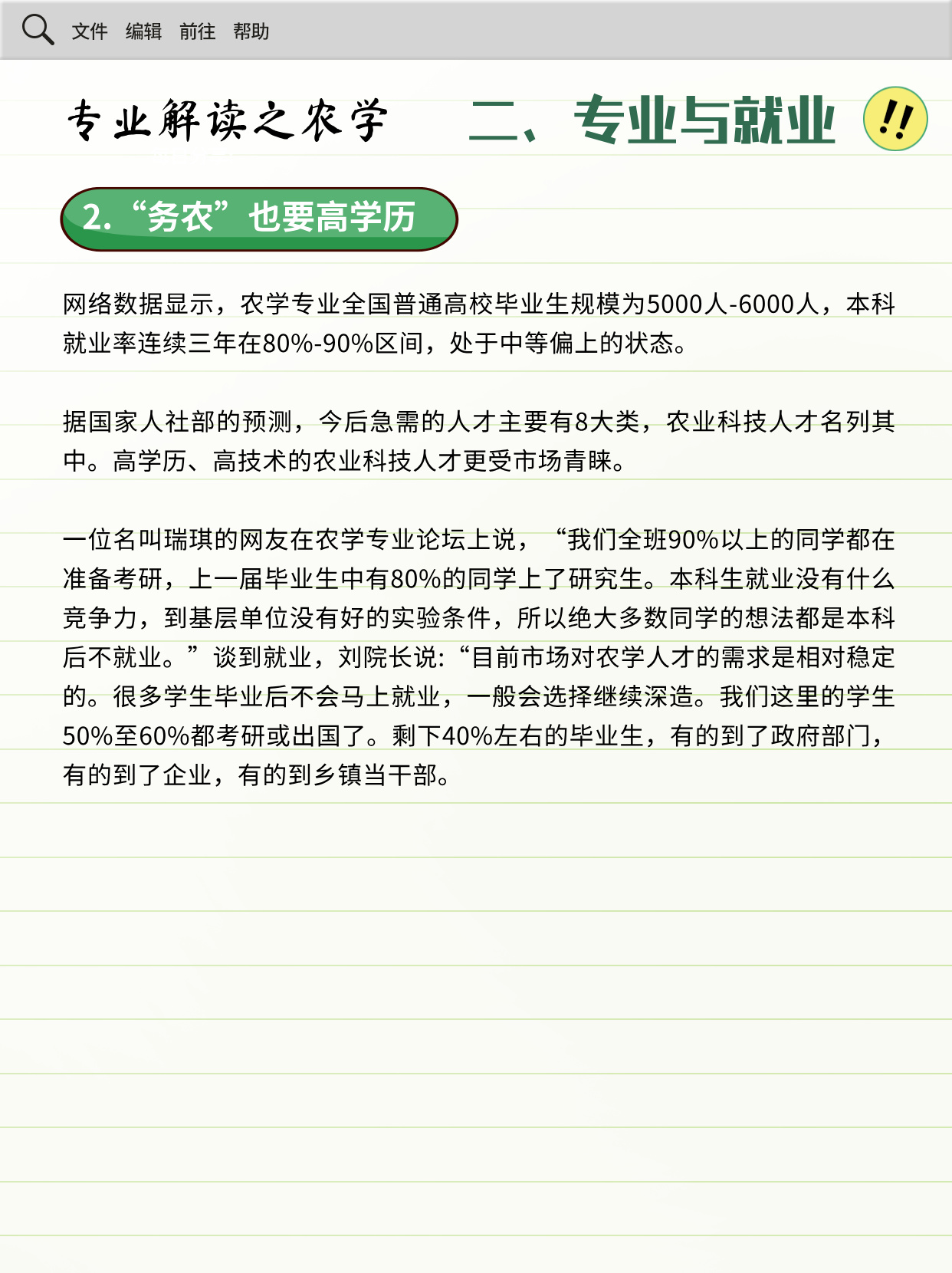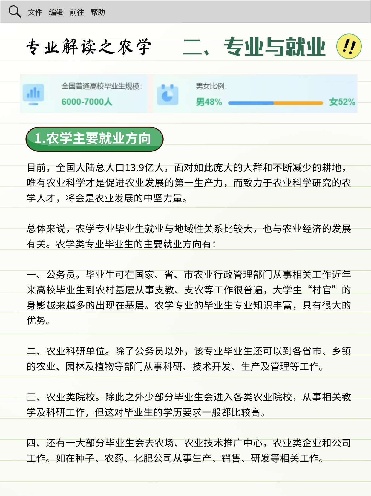 4.还有一大部分毕业生会去农场、农业技术推广中心,农业类企业和公司工作。