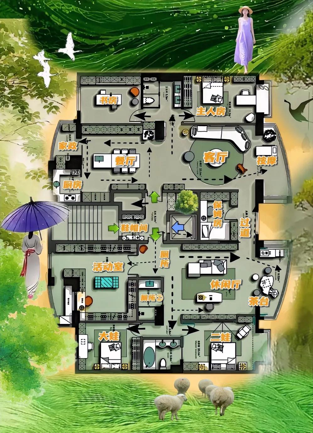优秀的户型,都是人性大师!动线活泼通透,格局端庄大气,387㎡属于倾国倾城,保留日常居家风格!