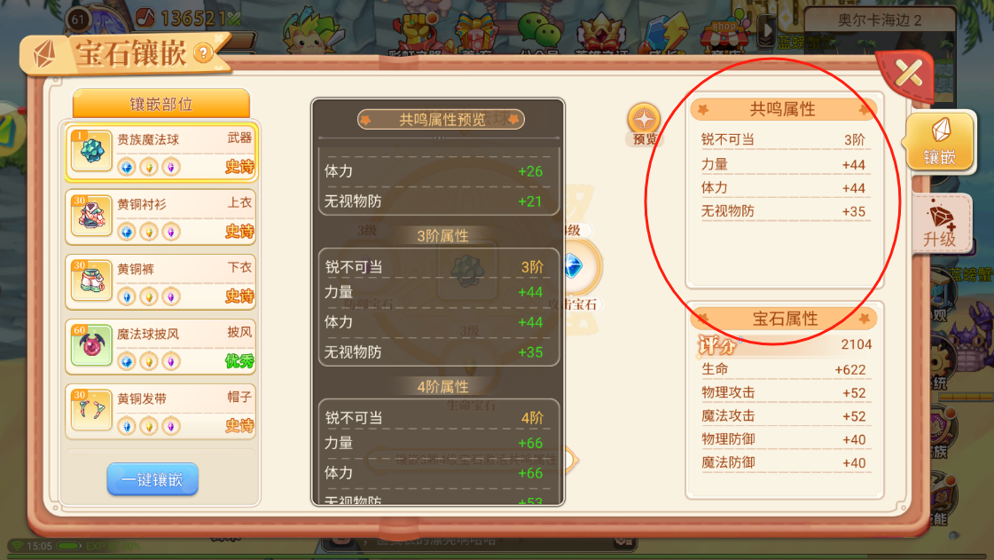 3·宝石玩法中有一项共鸣属性是玩家很容易忽略的,装备不同类型的宝石激活共鸣属性,不同的装备共鸣属性也不同,共鸣属性的的高低根据宝石的等级决定,而且不同装备的共鸣属性也不同,如武器的共鸣属性是加力量,而防具的共鸣属性是加生命和防御,饰品的共鸣属性是攻击,建议大家将更高级的宝石镶嵌在武器和饰品上,提高自己的输出能力。