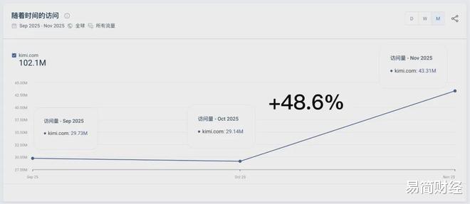 量子位智库数据显示,11月,Kimi以约8.5分钟的平均访问时长领跑全行业,Kimi web端11月相比10月还涨了48.6%。