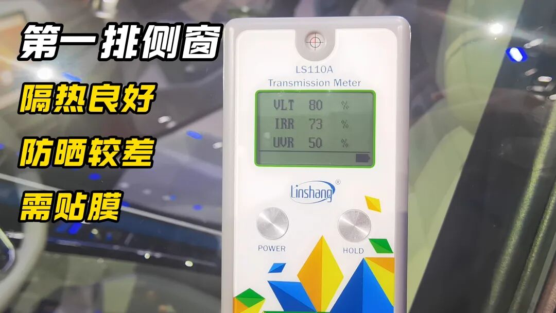 大众凌渡L第二排侧窗用料比第一排侧窗的用料还差 ,82%透光率(VLT)已经证明了这款玻璃没有隐私性,68%的红外阻隔率(IRR)还有42%的紫外阻隔率(UVR),在市场上均属于比较差的那一档,妥妥的既不隔热也不防晒。