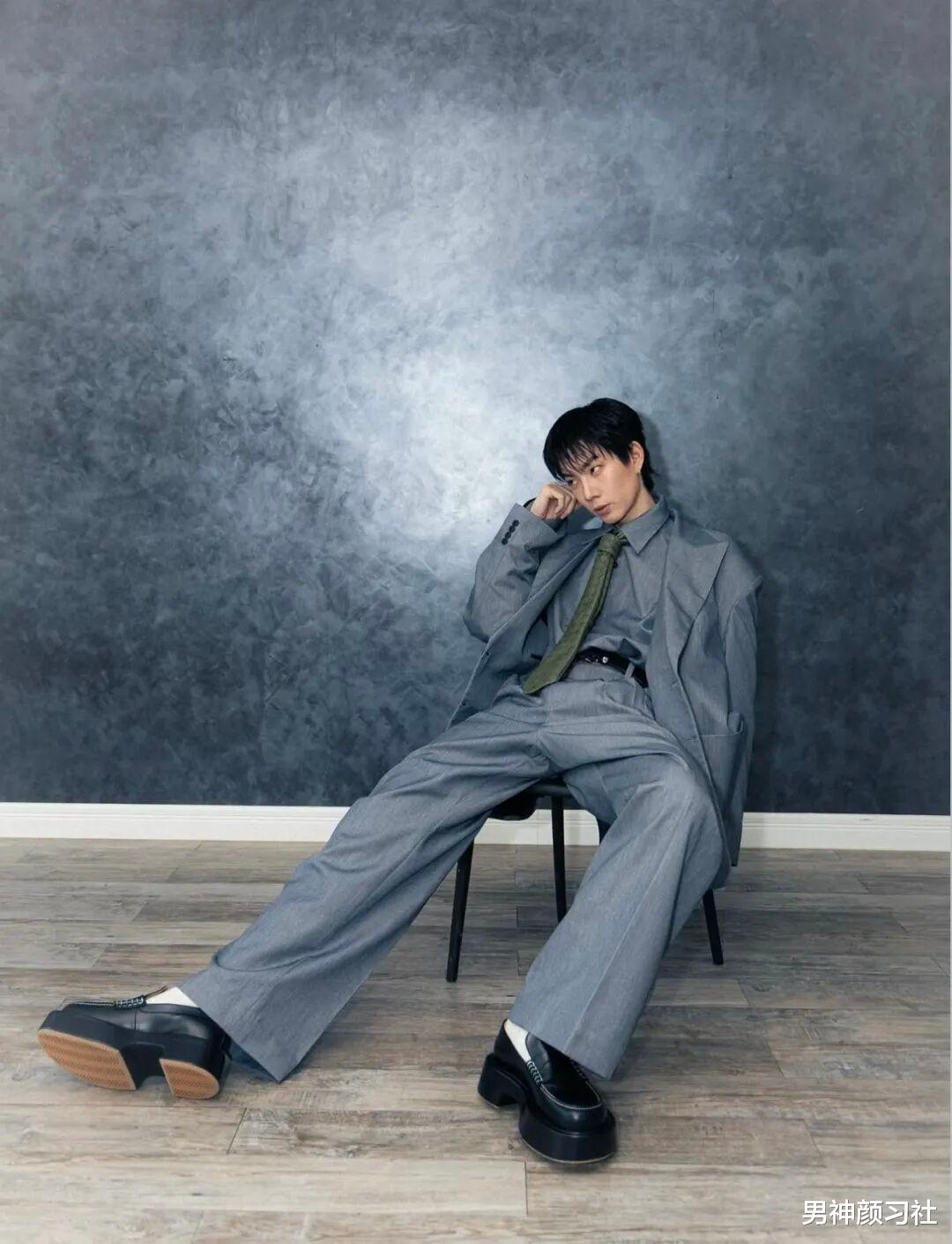 off也常穿西装,但不是传统意义上的那种。比如他那套灰色西装,整套一起穿,却选择了厚底乐福鞋来搭配。这种西装+厚底鞋的组合,让原本的商务感瞬间柔和,多了一点艺术气息,少了一点拘谨。