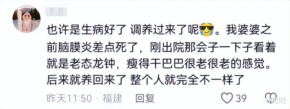 不过也有网友表示,或许只是因为之前身体不好,状态显得低迷颓废,现在病好了,精气神也回来了。